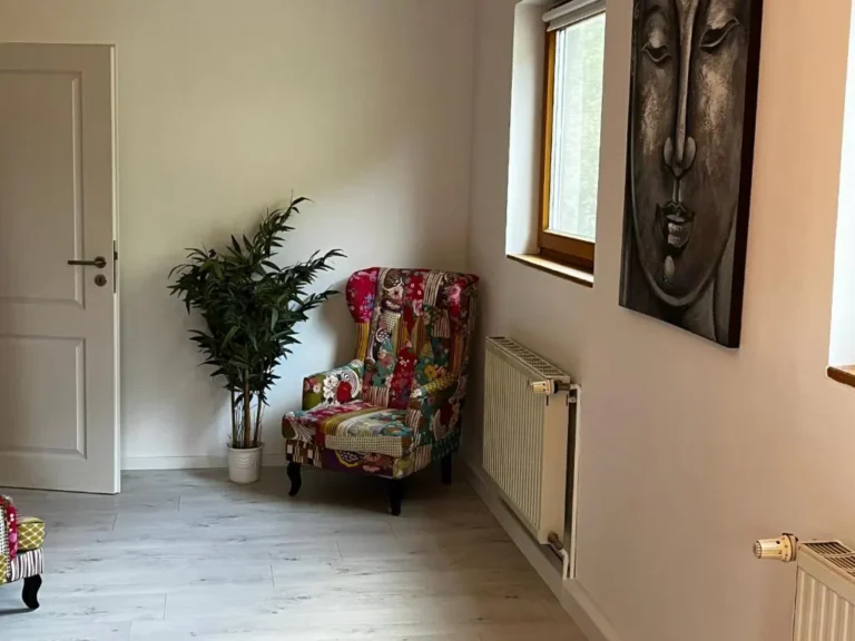 Unsere Ferienwohnung „Meeresrauschen“ im Erdgeschoss des Wohngebäudes bietet auf 45 m2 Platz für maximal 4 Personen und 2 Hunden (gegen Gebühr). Nach einem langen Tag bei den Pferden können Sie sich im Wohnbereich auf das bequeme Sofa fallen lassen und Unterhaltung auf dem 55 Zoll Fernseher genießen.
