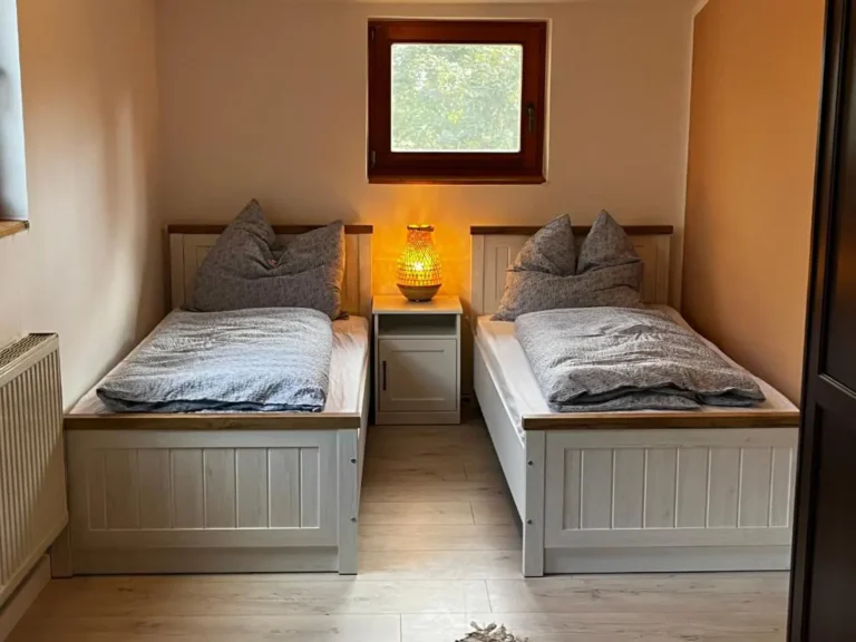 Im Schlafzimmer 1 gibt es 2 Einzelbetten und im geräumigen Schlafzimmer 2 wartet ein Doppelbett von 180 cm Breite auf Sie. Zwei weitere Personen können im Wohnbereich auf dem Schlafsofa mit 155 cm breiter Kaltschaummatratze schlafen. In dem hellen Tageslichtbadezimmer finden Sie eine ebenderdige Dusche, WC, Waschbecken und Spiegel vor.