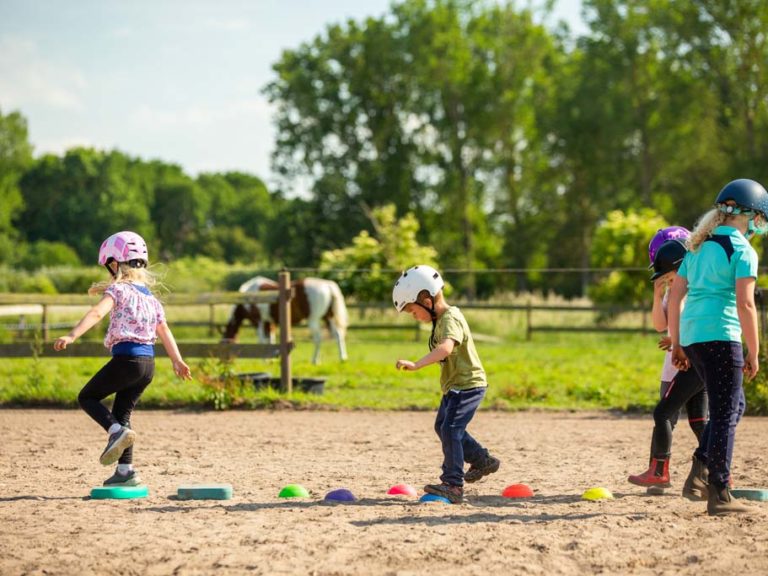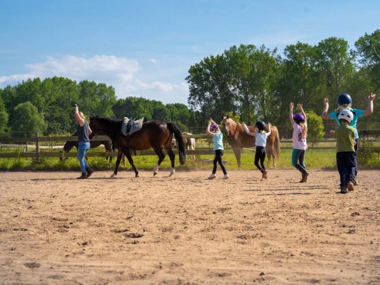 Gemeinsam beschäftigen wir uns mit Themen rund ums Pferd und üben das Putzen, Satteln und Trensen. Ihr reitbegeistertes Kind macht auf dem Pad Bewegungserfahrungen im Schritt, Trab und Galopp und lernt sich dabei auszubalancieren.